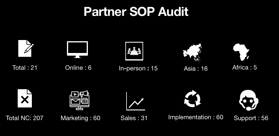 Through this program partners are made aware of a few simple but important activities such as the creation of marketing content, recording quotations in the system, having a well-defined project team structure, capturing milestone completion sign-offs, capturing testimonials from live customers, maintaining support data on a single platform with SLAs, etc. This program also provided a platform for the partners to demonstrate unique customizations and use cases handled by them.