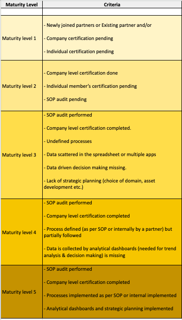 In Frappeverse 2023, the team also unveiled the Partner Maturity Model formally which will be used for grading partners based on their adherence to the best practices/guidelines. The appropriate level from 1 to 5 will be assigned to the partners which will be a distinguishing factor among them. They will have an opportunity to enhance their level by rectifying the processes and closely adhering to the SOP.