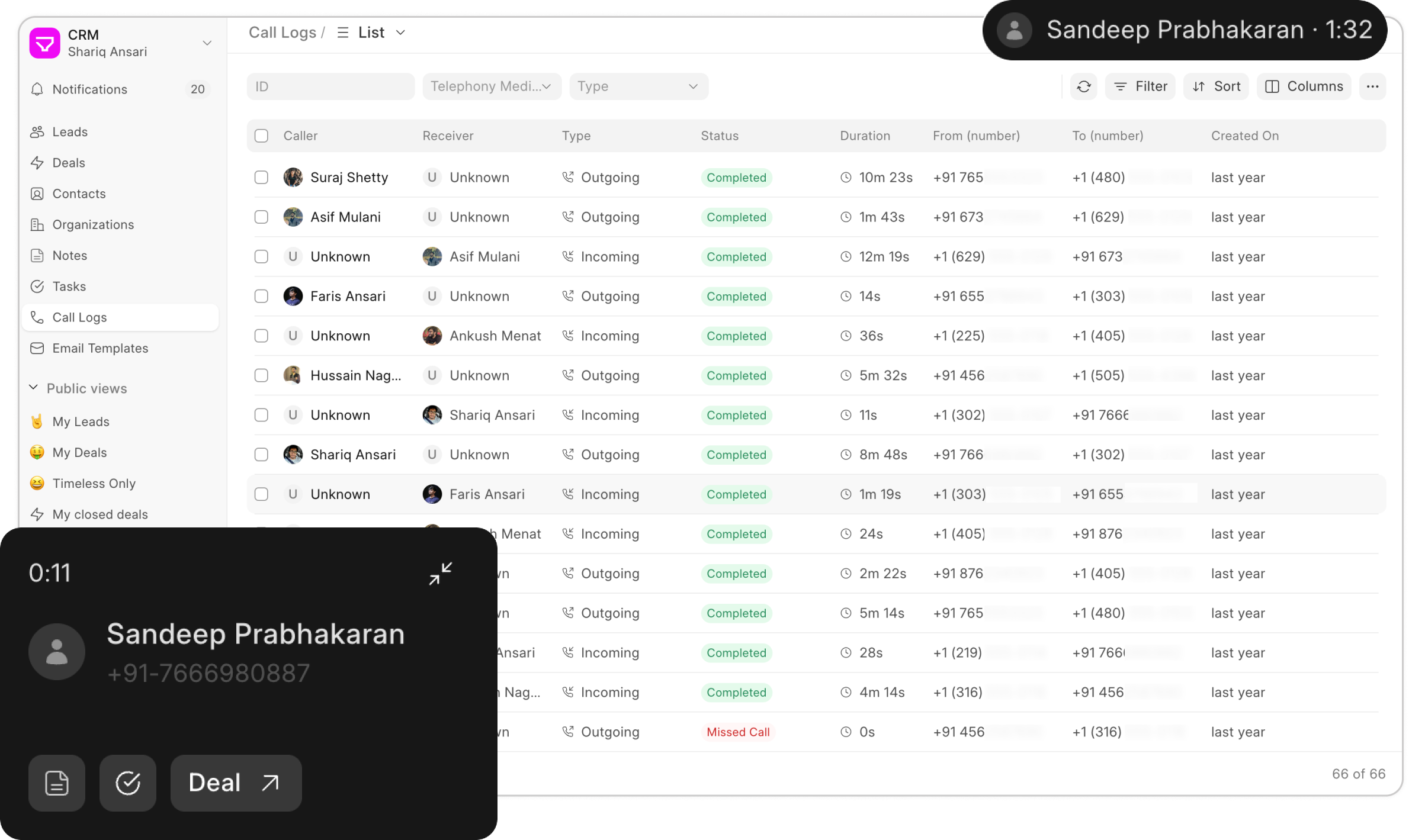 A five-minute phone call can decide a deal, but if details aren’t recorded, opportunities slip through. Frappe CRM’s Twilio integration lets you make and receive calls directly from the CRM, keeping every call logged. Whether it’s a negotiation or a follow-up, you can always check back on what was discussed.
