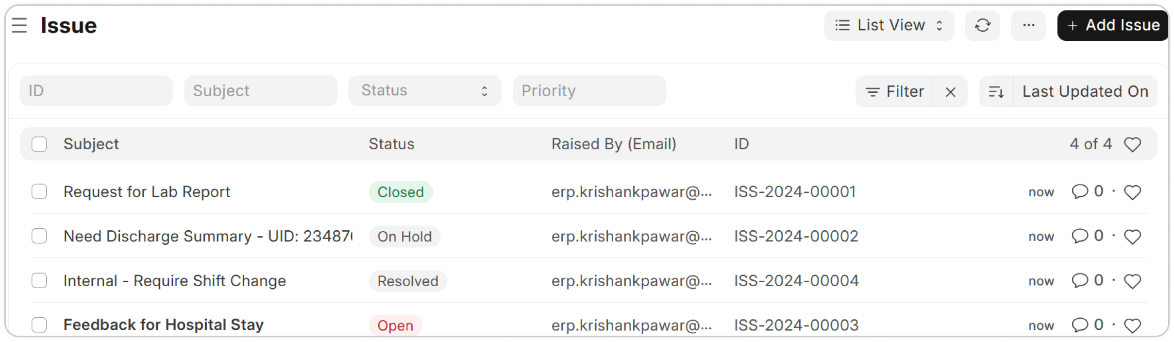 Foster transparency and better communication through ERPNext's support module. Patients can submit queries, access reports, and request services, while employees can raise internal tickets for troubleshooting and resource requests. The system enables tracking and resolution of issues in real time, improving overall satisfaction and operational efficiency.