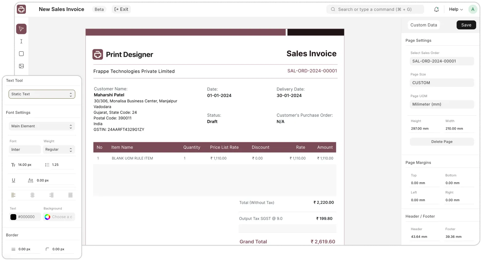 Hide, add, modify, or calculate fields in any standard transaction (eg. sales invoice, sales order, item master, BOM), you can do so with just a few clicks and a sleek visual editor, without adding a single line of code.