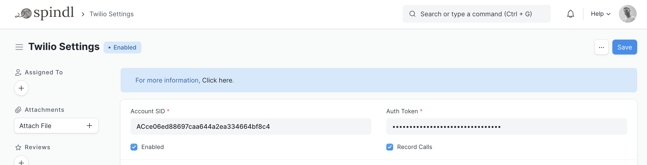 - Choose your Twilio number from the Twilio Number dropdown field. This is going to be your Twilio communication number.