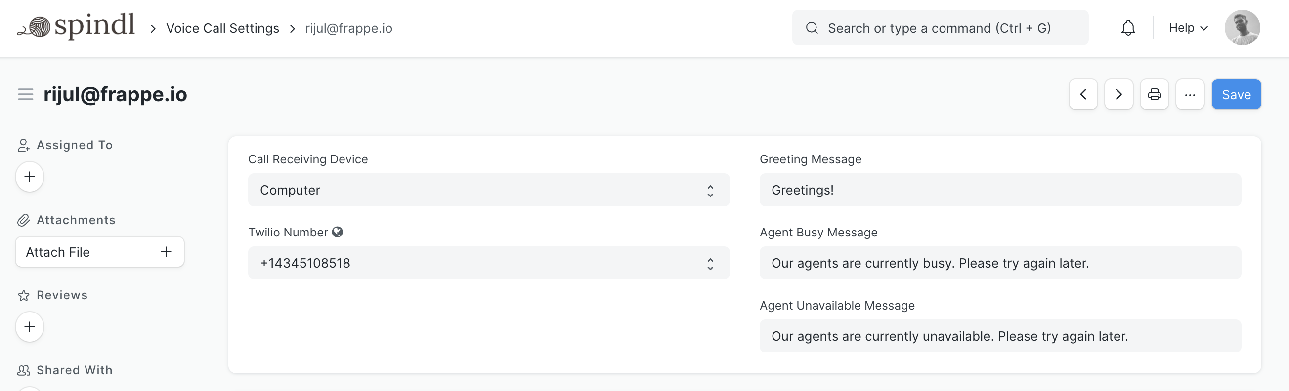 Every user(Agent) must have voice call settings to make or receive calls. Users can use Twilio features once 'Voice Call Settings' are created.