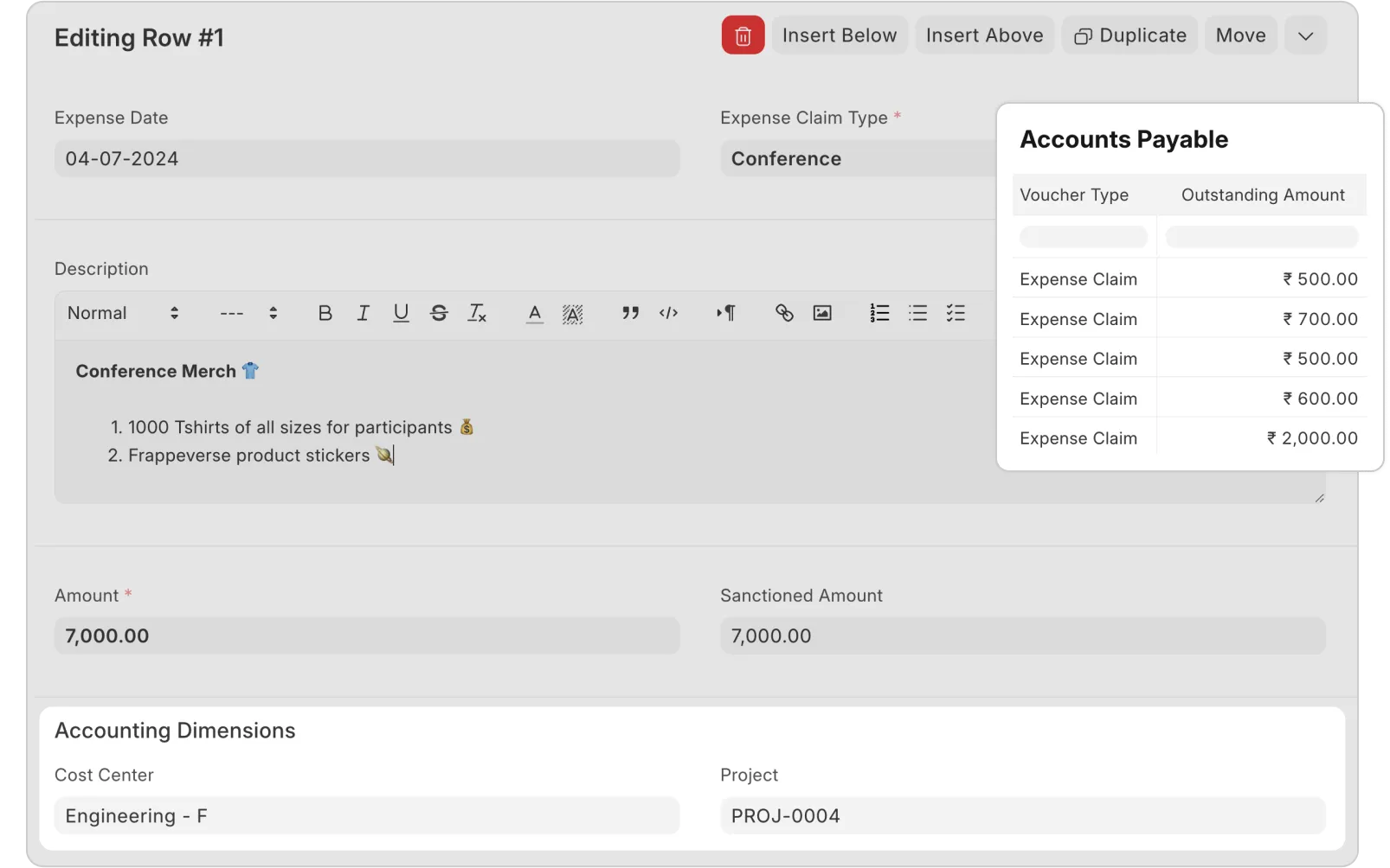 With Frappe HR, every HR & payroll transaction is meticulously recorded with its corresponding accounting impact. Easily assign accounting dimensions such as projects, cost centers, and departments to your claim items. This ensures costs are accurately tracked against the right entities for cleaner reporting.