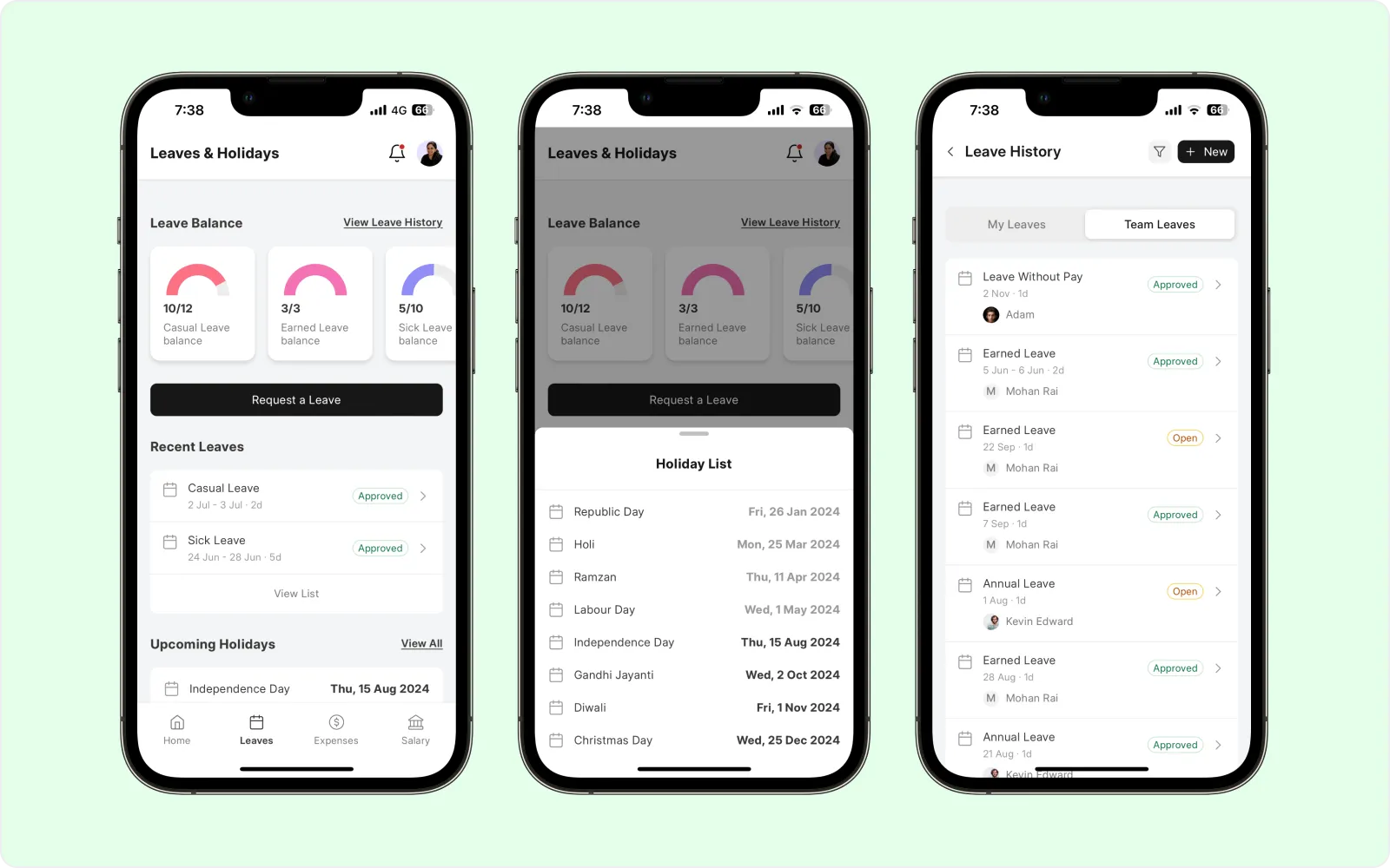 View leave balances for all your allocated leaves at a glance. Keep your recent leave applications handy for quick edits and approval tracking.