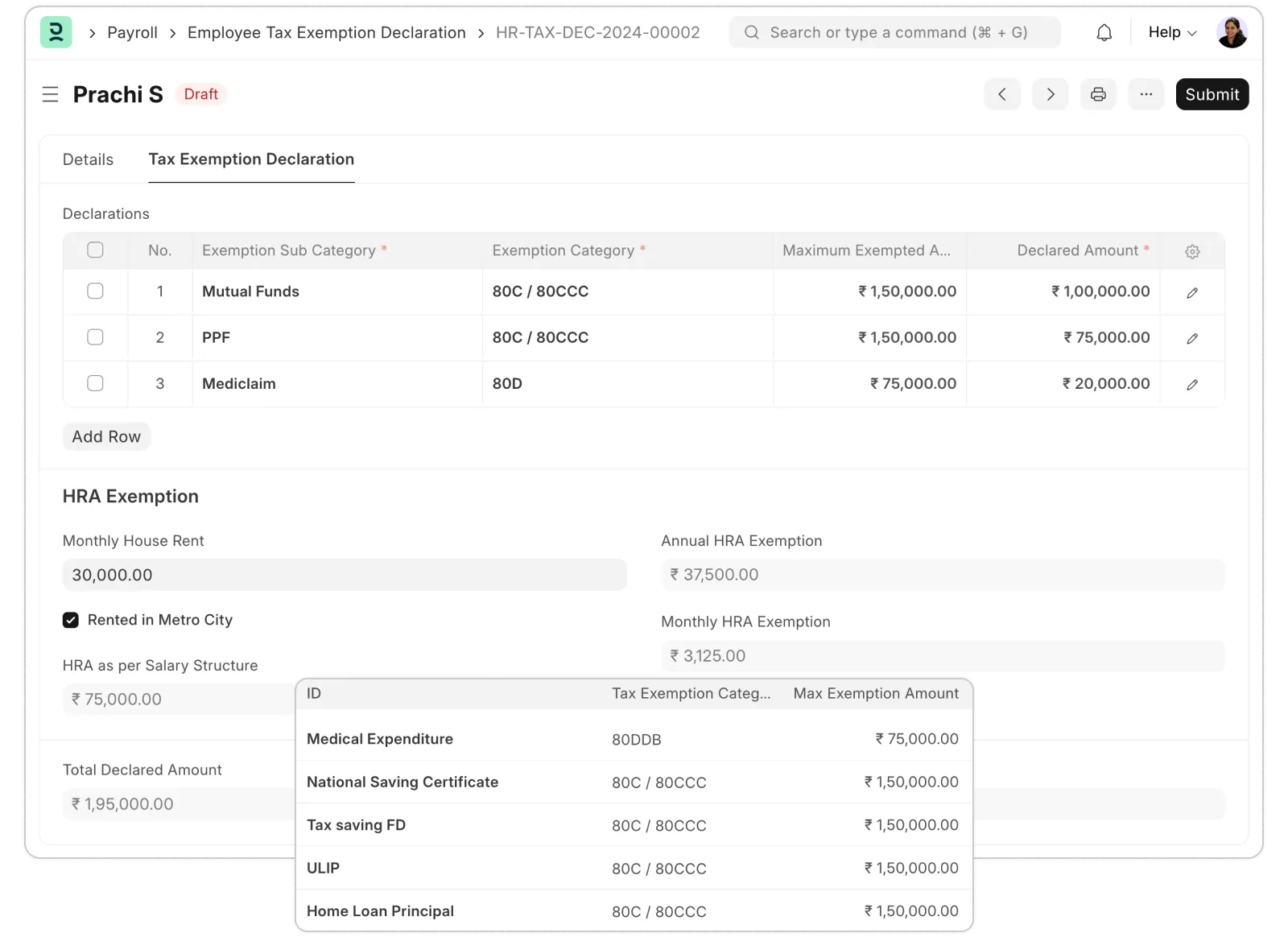 Towards the end of your payroll cycle, employees can upload exemption proofs to support their declarations. You also have the option to deduct tax for unsubmitted proofs, ensuring complete compliance.