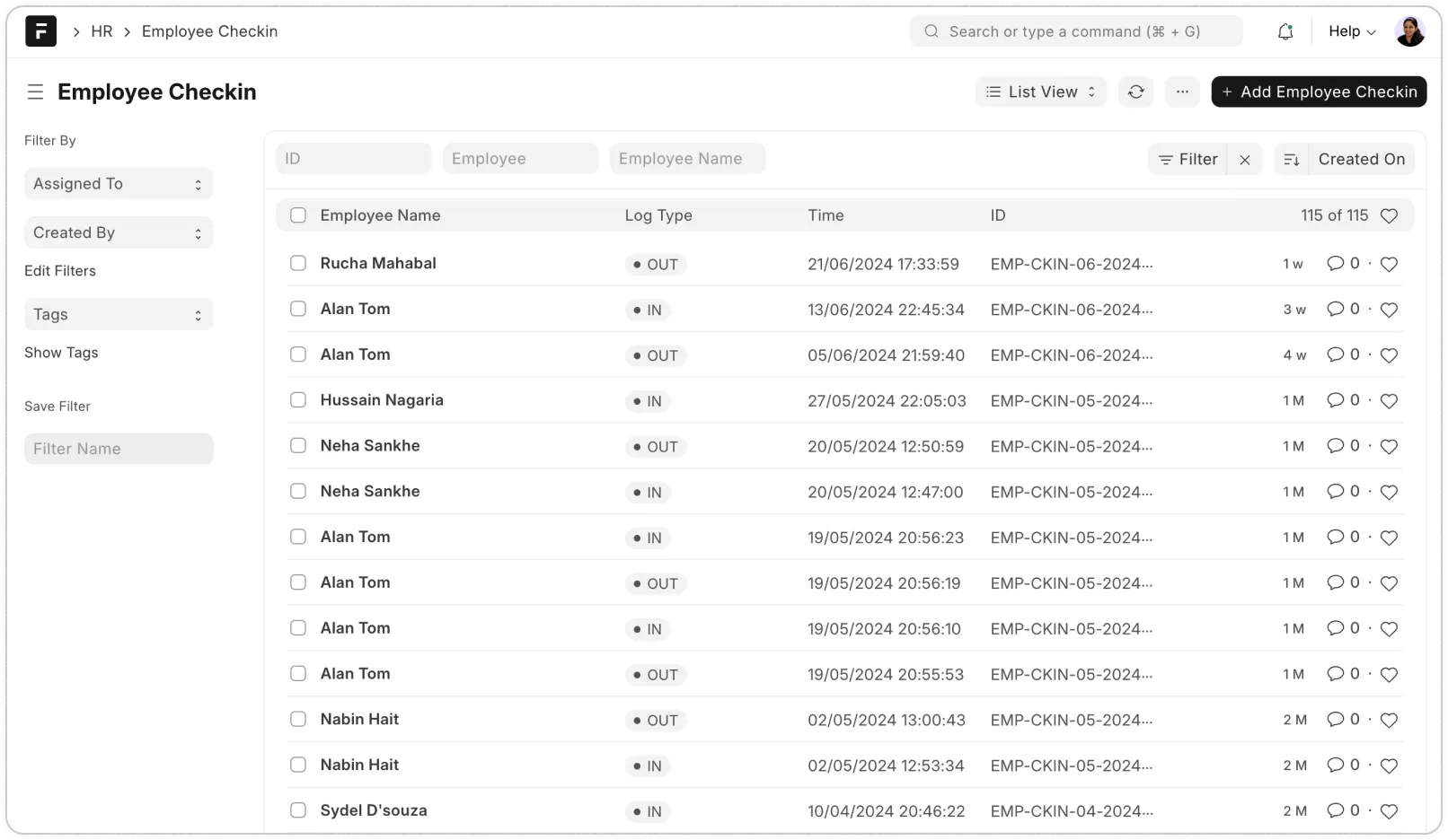 Make check-ins and check-outs a breeze with the Frappe HR mobile app’s easy interface. You can also enable geolocation tracking for a detailed work location history.