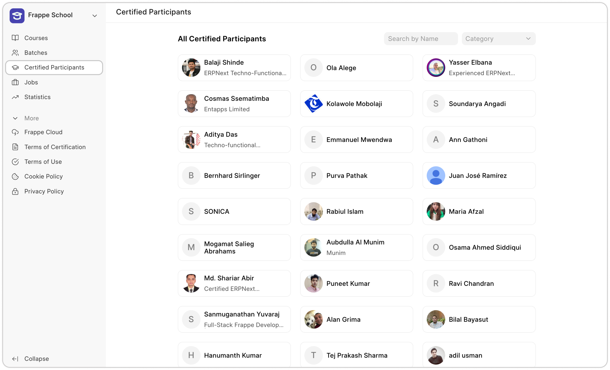 Earning a certificate is a great achievement, but the real reward is putting that knowledge to work. Frappe Learning helps you turn your hard-earned credentials into career success by connecting you with employers and showcasing your accomplishments.