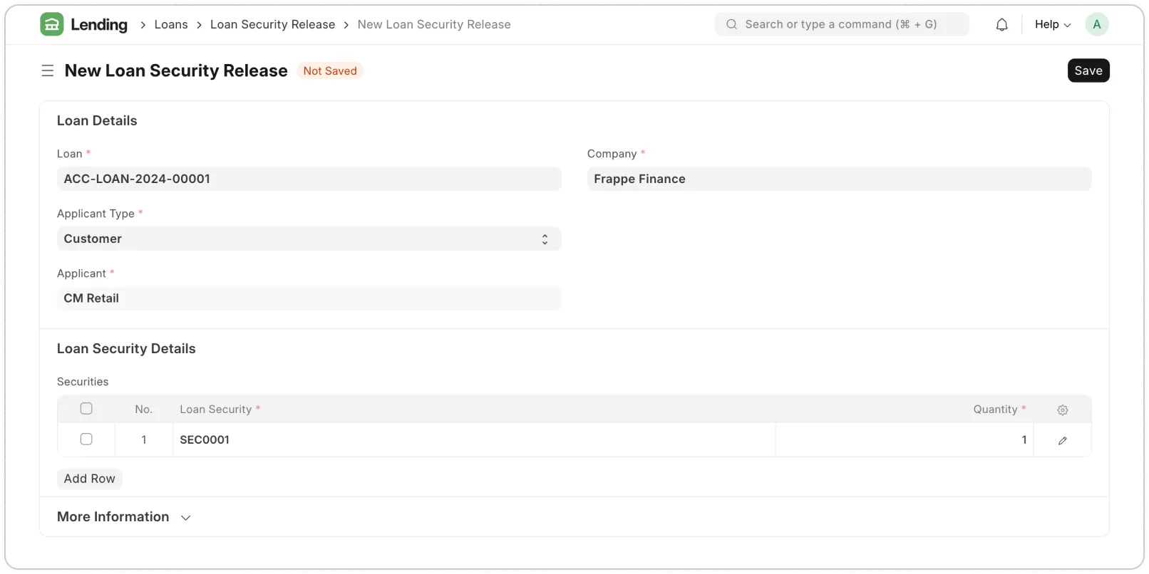 Linking collateral to a loan is simple. Once an asset is pledged, you can assign it to a loan with a few clicks, ensuring that it remains recorded until the borrower repays. If a single security is pledged against multiple loans, Frappe Lending keeps track of the allocations, preventing the overuse of an asset. When a loan is fully settled, releasing the collateral is just as easy—records are updated instantly, and borrowers regain ownership without delays or extra paperwork.