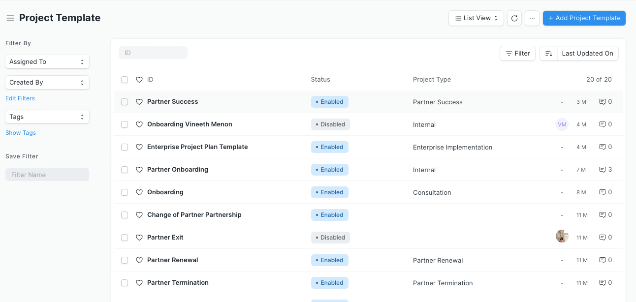 This repetitive task can be made a bit more efficient for your team by creating reusable templates based on project types. The overall scope of each project type can be split into different tasks and all the relevant tasks can be clubbed together under a project template. This will help you create new projects more efficiently.
